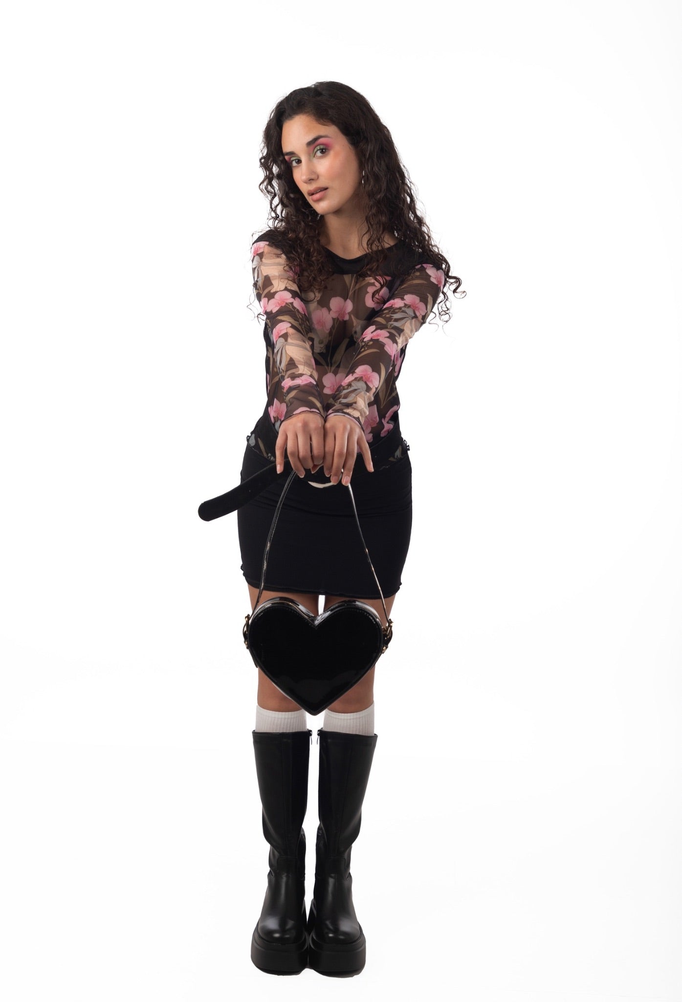 ❤️ Cartera Lonely Hearts Negra ❤️ CHAROL Ancho 21 Cm Largo 15 Cm Largo Total 44 Cm PRODUCTO IMPORTADO