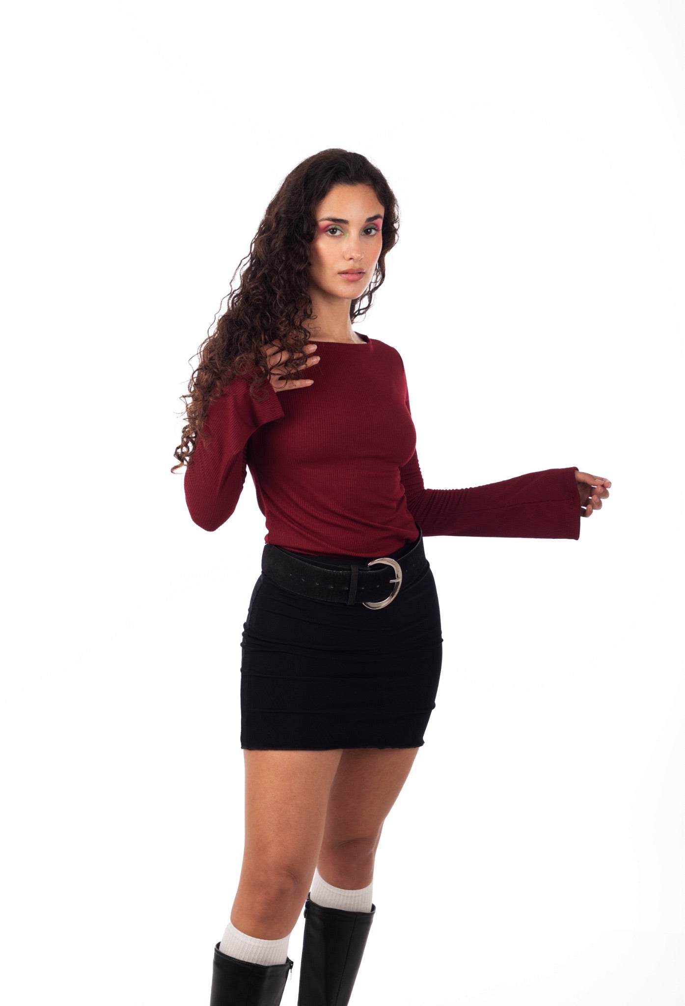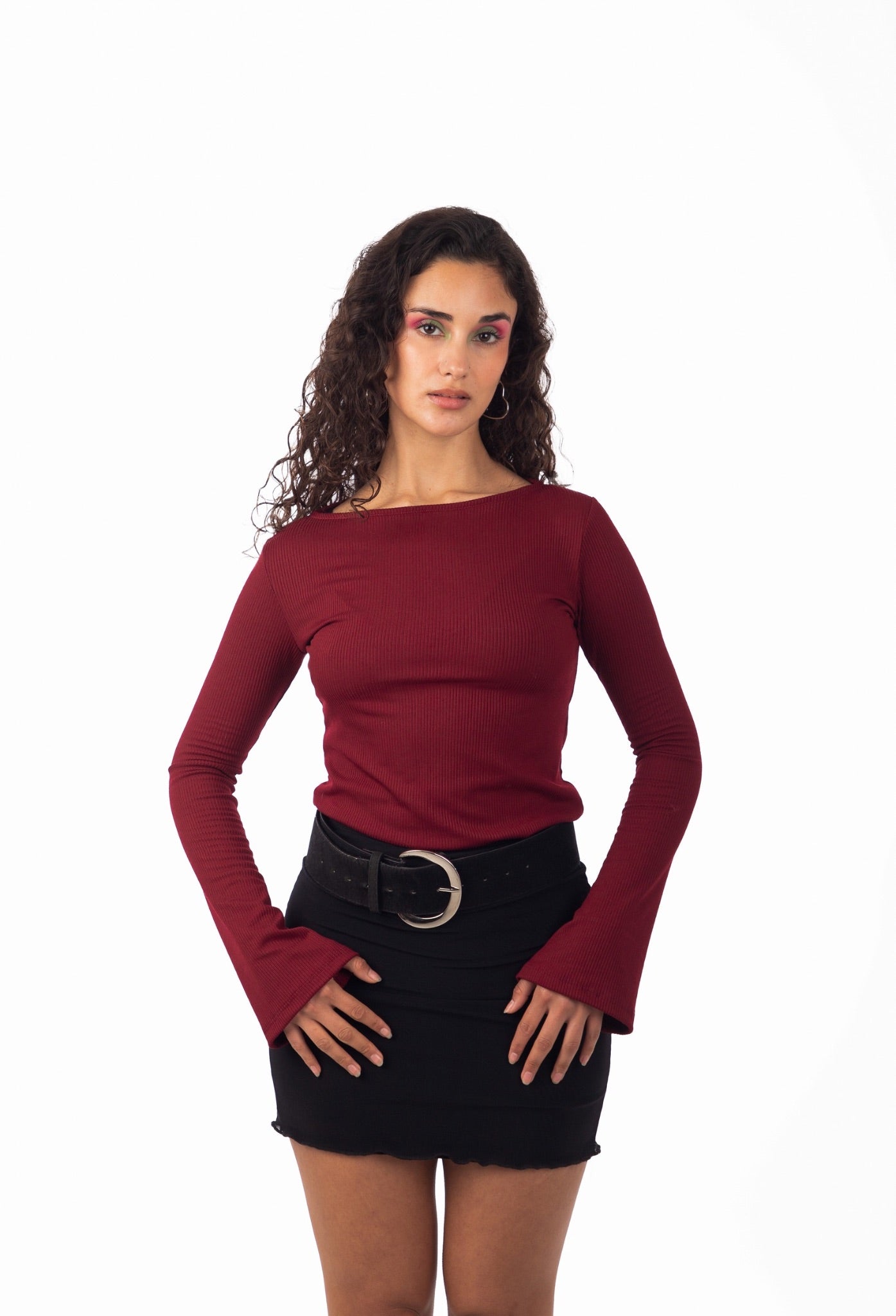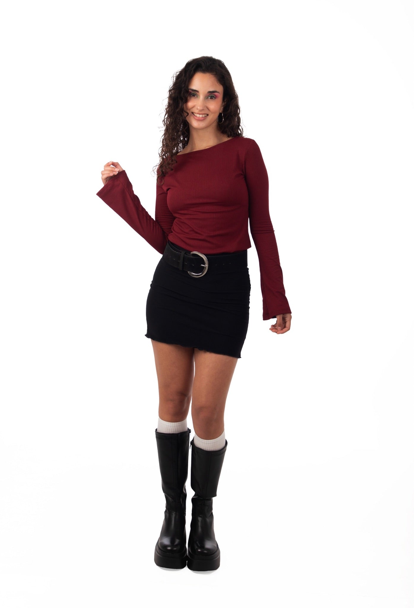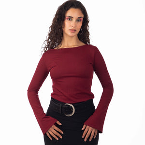 ✦Polera confeccionada a partir de un tejido 40% spandex 60% algodón, corte a la cintura levemente ajustado, que resalta la silueta,se adapta con comodidad gracias a su amplio cuello. Las mangas con detalle en el puño le agregan un detalle distinto, perfecto para salir tanto de día como de noche.