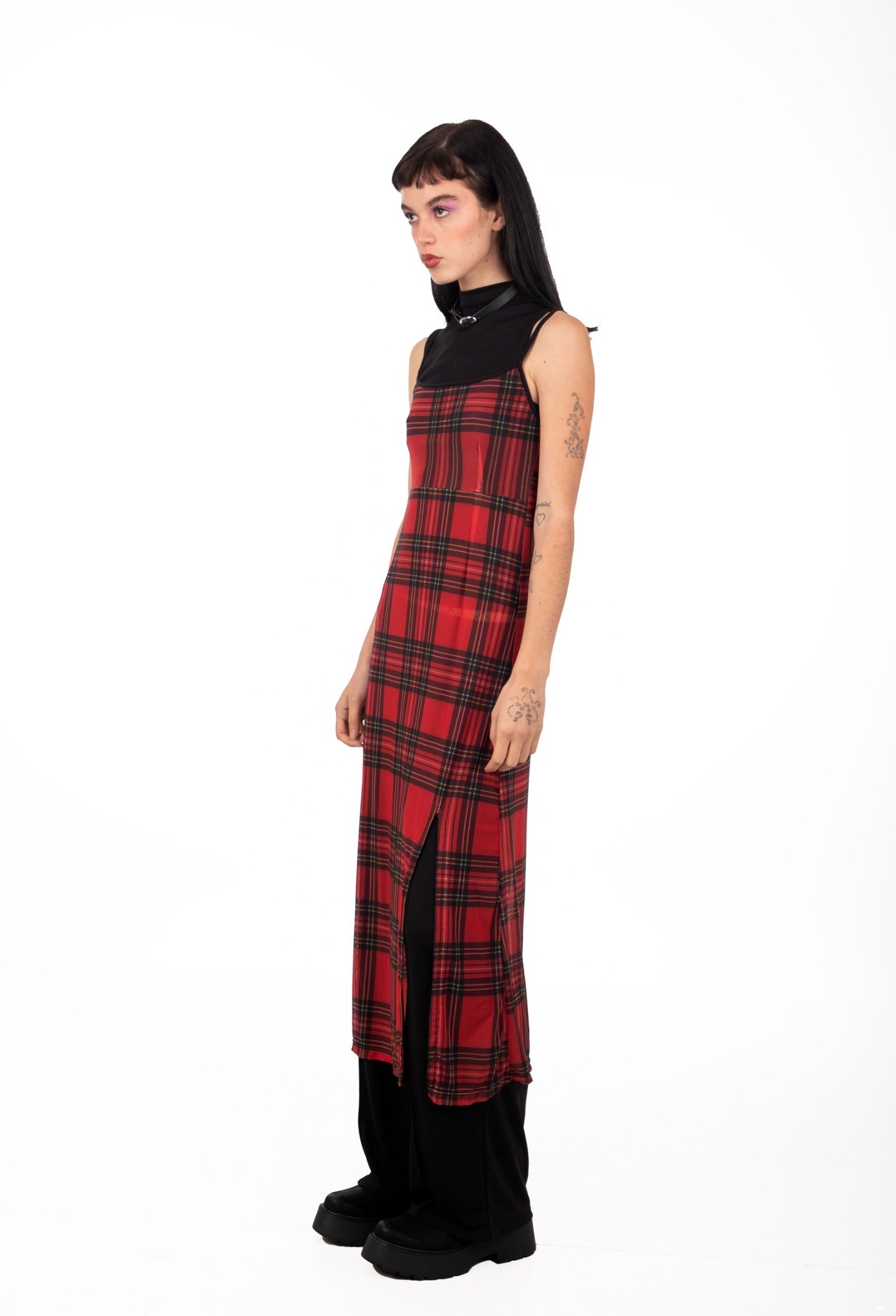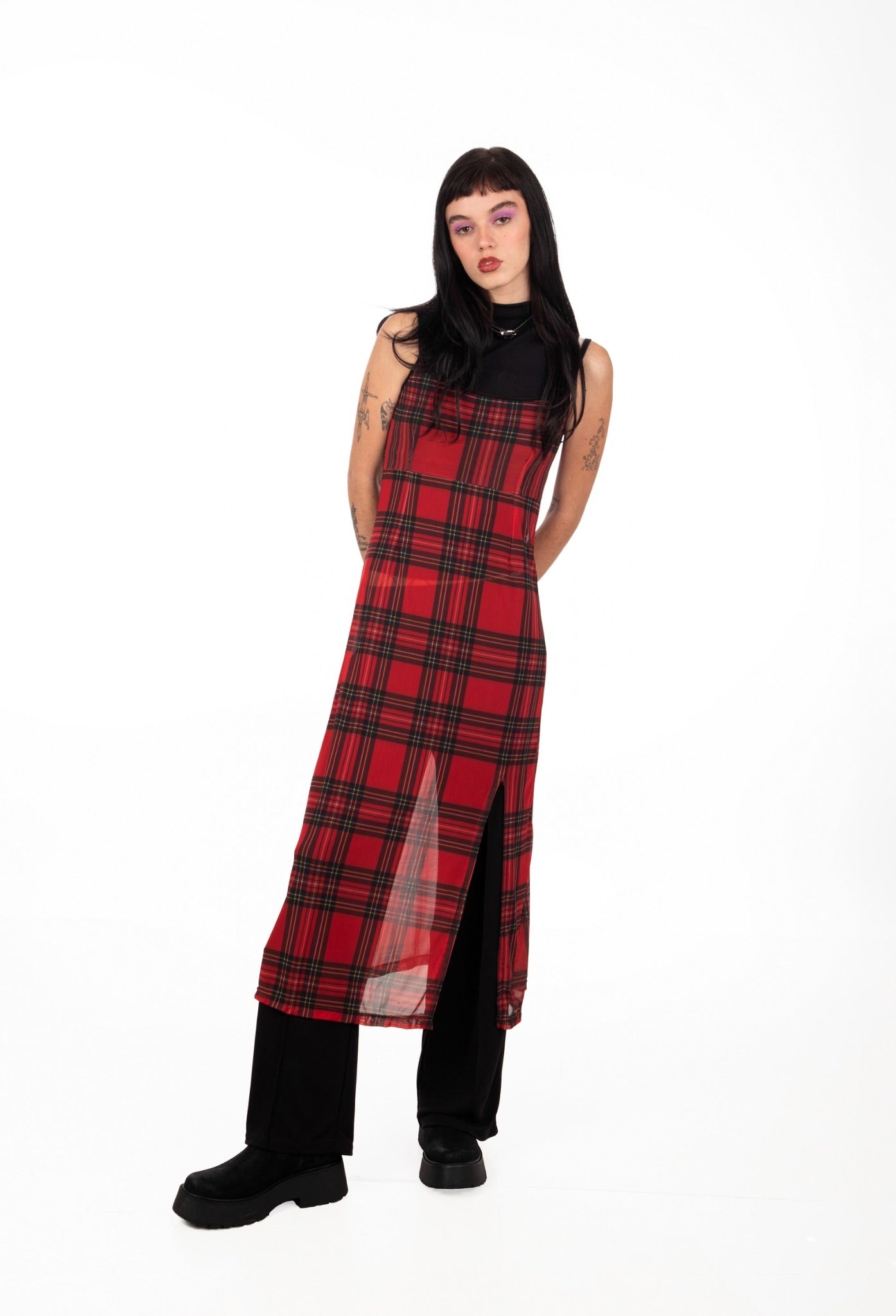 ✦Vestido confeccionado en malla elástica da, estampado tartán rojo, un clásico que nunca pasa de moda. Diseñado para usarlo en capas, es ideal para llevar sobre poleras, Beatles, jeans, pantalones, lo que quieras!